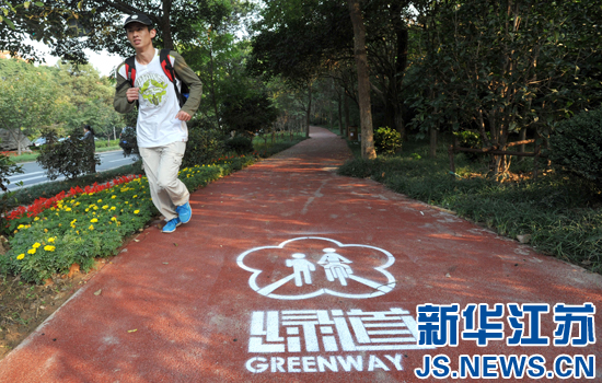 10月22日,始于琵琶湖公园入口,终于岔路口的22.9公里长南京环紫金山绿道落成,开始正式启用,市民可以骑自行车或步行沿红色绿道游览观看紫金山风景。据悉,南京今年起全面启动绿道建设,旨在发挥城市公园绿地生态、旅游、休闲、健身等功能,鼓励市民百姓绿色出行,开启城市慢生活。新华社发(总汇 摄)