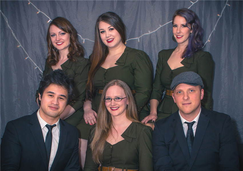 Company B Jazz Band is one of Vancouver, Canada’s foremost jazz ensembles, featuring a harmonizing female vocal trio in vintage style. In their 10+ years as a band, this talented group of musicians has delighted audiences across the globe, from all walks of life. Their creative arrangements, sharp image, and charming wit never fail to get toes tapping and faces smiling. 2018 sees the band touring Europe both in May and November, and they have graced the stages of such renowned jazz and music festivals as the TD Vancouver International Jazz Festival (Canada), the Jiangsu Jazz & World Music Festival (China), the New Orleans' Boswell Sisters Review (US), the Sacramento Jazz Festival (US), the Pender Harbour Jazz Festival (Canada), as well as the Tiny Lights and Arts on the Fly folk music festivals (Canada). The group enjoys frequent airplay on Canada's internationally broadcast CBC Radio 1 and 2, having been featured on such popular programs as Hot Air, Canada Live, and in live broadcasts on The Early Edition. The original 6-piece lineup now performs with as many as a dozen members as Company B Big Band, and as few as four in what has been dubbed The Ladies Of Company B. The latter includes the three vocalists also playing trumpet, ukulele and percussion, as well as upright bass.