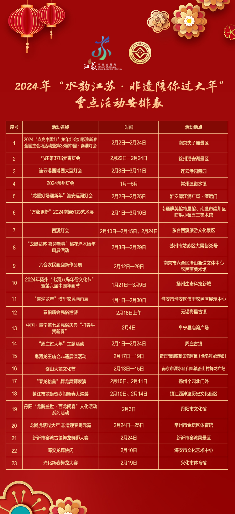 龙年春节哪里去,水韵江苏·非遗陪你过大年!春节是中国传统节日的重要代表,在这个节日里,除了探亲访友、游山玩水,还能过得更有文化味。